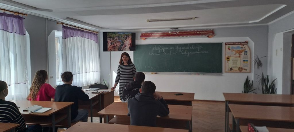 З метою формування екологічної культури особистості, бережливого ставлення до природніх ресурсів, зменшення негативного впливу людської діяльності на навколишнє середовище, викладач біології і екології Марія Голуб обговорила зі здобувачами освіти результати національного землеробства, неправильне використання різних речовин для обробки полів та інших видів дій. У кожному з цих випадків грунт втрачає свої властивості, оскільки порушуються природні процеси, а живі мікроорганізми гинуть.