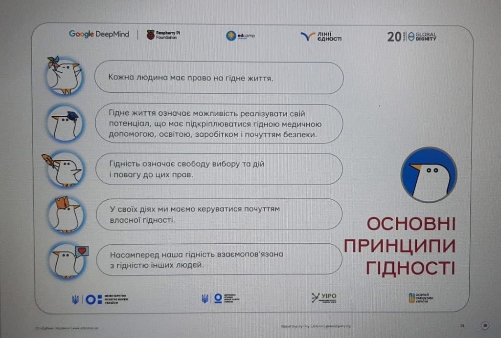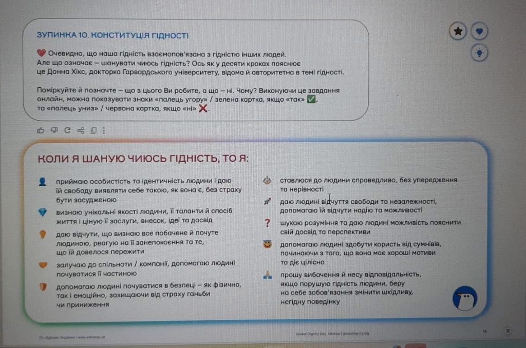 У рамках участі в Global Dignity Day ми провели низку заходів, спрямованих на формування в учнівства почуття власної гідності, поваги та усвідомлення цінності людських прав: