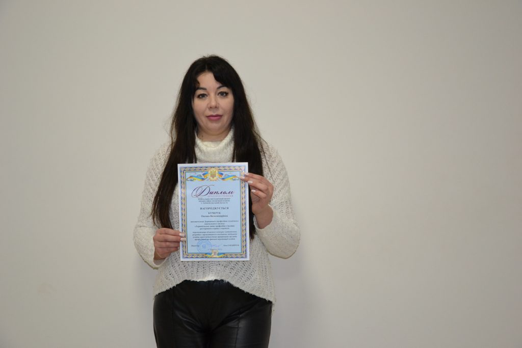 Дипломом другого ступеня нагороджено виховательку гуртожитку Кучерук Оксану з методичною розробкою на тему «Вейпінг – шкідливо, чи ні?».