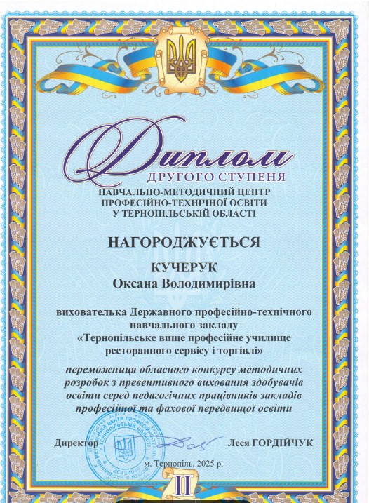 Вітаємо з перемогою в обласному конкурсі методичних розробок з превентивного виховання здобувачів освіти серед педагогічних працівників закладів професійної та фахової передвищої освіти!
