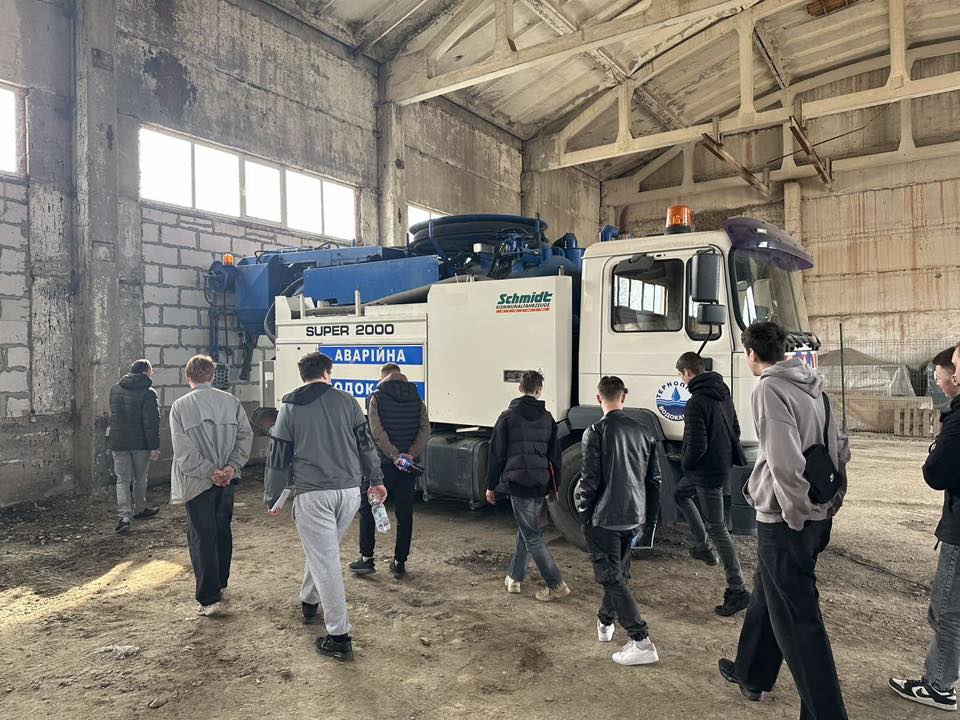 Здобувачі освіти 26 групи, які опановують фах “Слюсаря з ремонту колісних транспортних засобів; водій автотранспортних засобів (категорії В і С) разом із майстром виробничого навчання Андрієм Удаловим ознайомилися з особливостями майбутньої професійної діяльності. Начальник транспортного відділу провів змістовну екскурсію, під час якої учасникам заходу продемонстрували транспортний парк підприємства, спеціалізовану техніку та розповіли про її використання у процесах обслуговування водопровідних і каналізаційних мереж.