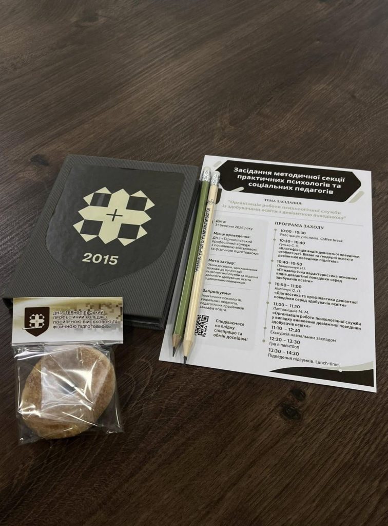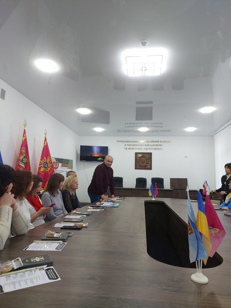 Практична психологиня нашого училища Марта Грабовецька взяла участь у засіданні методичної секції практичних психологів та соціальних педагогів на тему «Організація роботи психологічної служби із здобувачами освіти з девіантною поведінкою», яке відбулося 31 березня на базі Тернопільського професійного коледжу з посиленою військовою та фізичною підготовкою у місті Збараж.