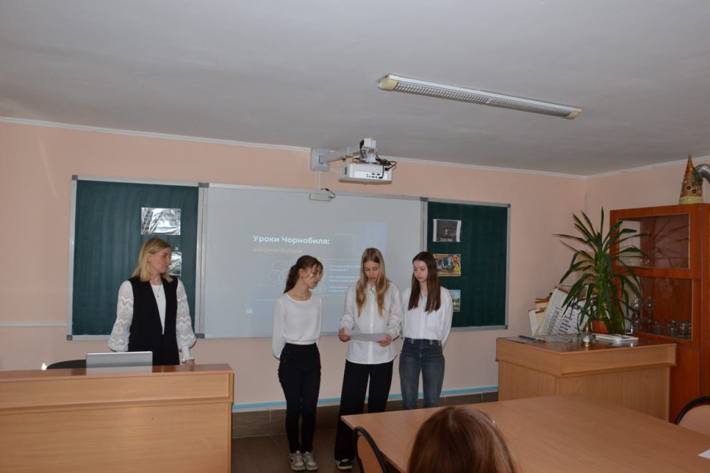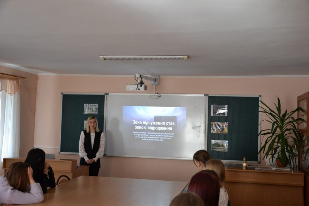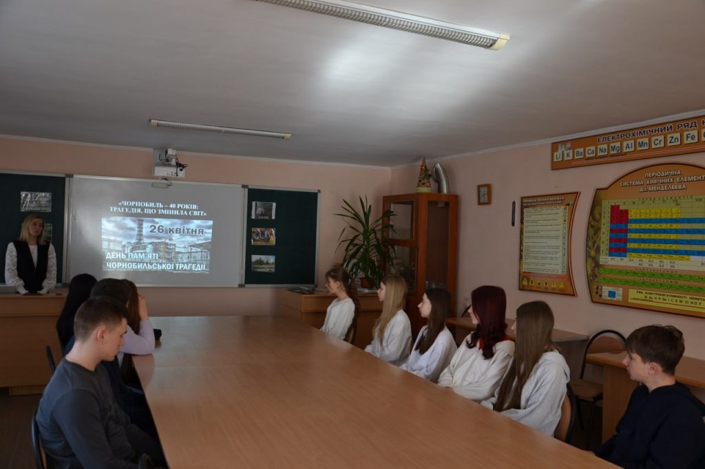 Під час уроку здобувачі освіти 15 групи разом із викладачкою біології та екології Марією Бурбан розглянули причини та хронологію подій 26 квітня 1986 року, обговорили сучасний стан Зони відчуження та її поступове перетворення на природний заповідник, проаналізували екологічні наслідки катастрофи й вплив радіації на живі організми, а також дискутували про ядерну безпеку в сучасному світі.
