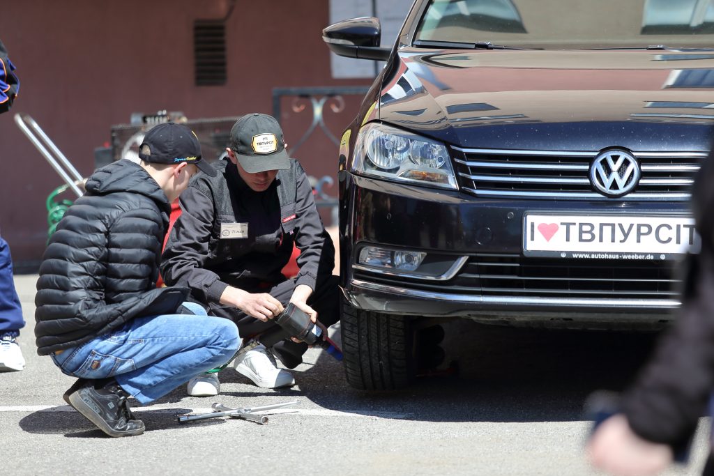 Виробниче навчання, 16 група, професія «Слюсар з ремонту колісних транспортних засобів». Майстер виробничого навчання — Владислав Ізініцький.